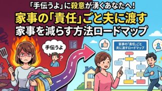 夫の「手伝うよ」にイラッとするのは、あなたが家事の全責任を負っているから。そのイライラ、終わりにしませんか?この記事では、家事の「責任」ごと夫に渡し、夫婦で家事を分担するための具体的なロードマップを解説します。